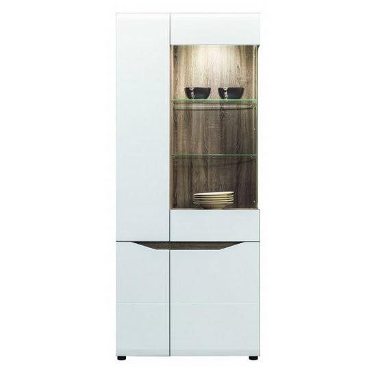 LIONEL je moderní elegantní systémový nábytek v atraktivním barevné kombinaci dub sonoma truflova / bílý lesk. Tento nábytek Vás zaujme, na první pohled, svými hladkými tvary a originálně řešenými úchyty dvířek a šuplíků, které nenarušují jejich plynulou línii. Sektorový nábytek LIONEL můžete využít při zařizování obývacího pokoje, jídelny, ložnice i studentského pokoje. Korpusy skříněk jsou vyrobeny z kvalitní dřevotřísky v barvě dub sonoma truflový. Dvířka jsou z foliované MDF v bílé barvě ve vysokém lesku. Komfort při používání dvířek a šuplíků zajišťují tlumiče pro tiché dovírání.