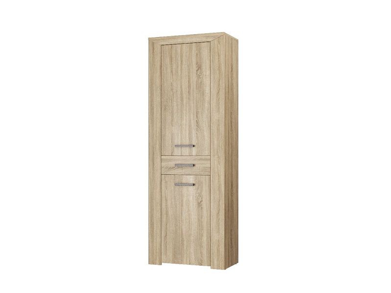 Skříň MADY VS01 - dvoje plná dvířka nad sebou + dřevěné police. Uprostřed je šuplík na drobnosti.