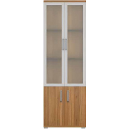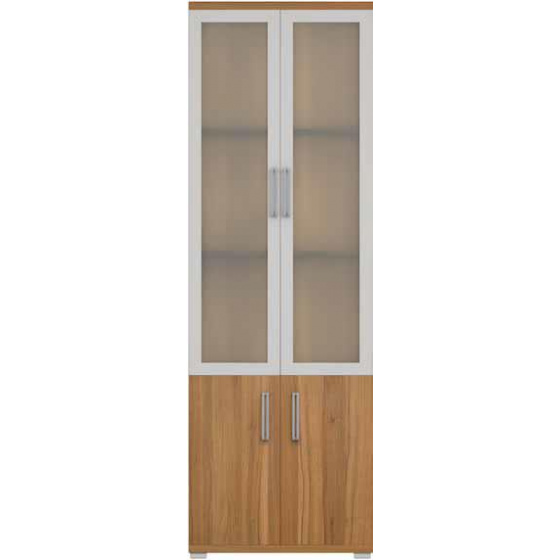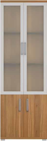 Vitrína N - 011 je dodávána kompletně vybavená policemi a prosklenými horními dvířky - hliníkový rám, středně mléčné sklo, spodní dvířka jsou plná. Velký výběr barevného provedení, včetně kombinací barev je samozřejmostí. Výběrem těch správných úchytů dovršíte svůj jedinečný design.