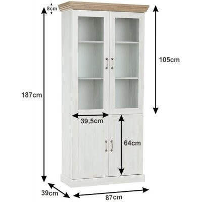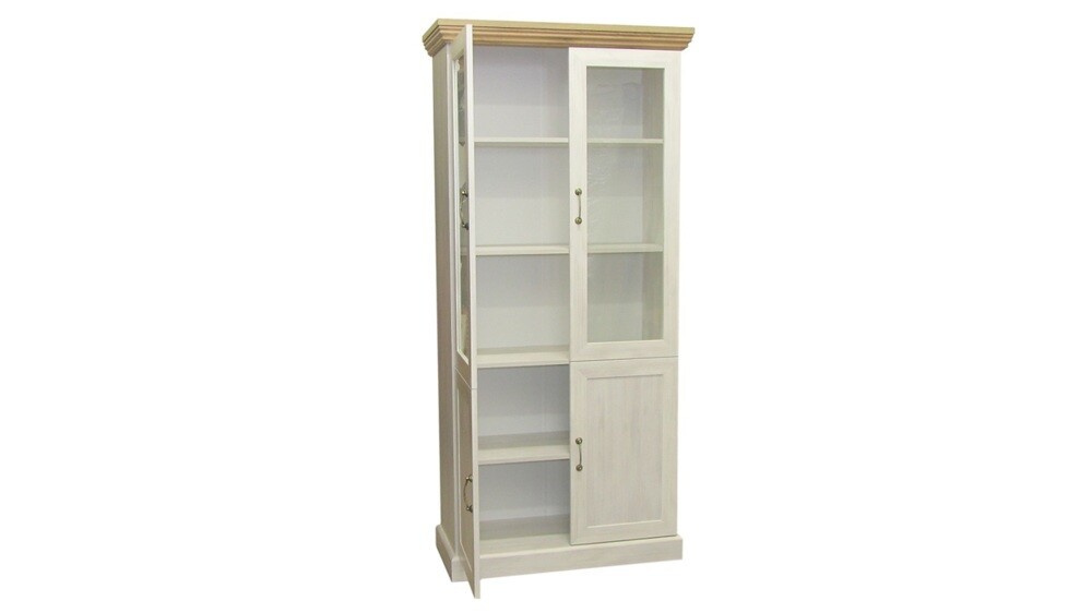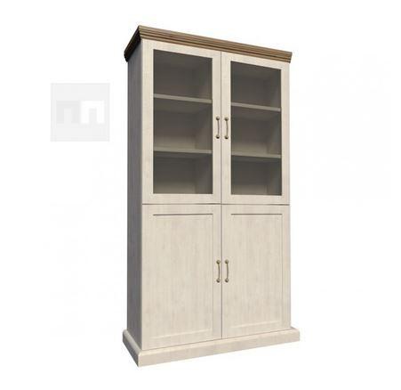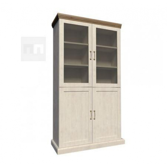 Vitrína W4D je policová - spodní dvojdvířka jsou plná, horní dvojdvířka jsou prosklená