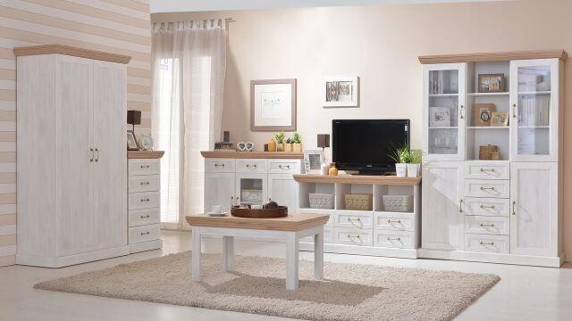 Anglický styl Vašeho domova? To je systémový nábytek ROYAL vyroben v barevné kombinaci Nordic borovice a dubu dziki. Nábytek ze systému ROYAL je vyvinutý k dokreslení útulného a stylového interiéru v anglické stylu. Sektor ROYAL se skládá z 25 prvků, ze kterých si můžete vytvořit jedinečný vzhled jídelny nebo obývacího pokoje. Nábytek ROYAL je vyrobena z kvalitní MDF.