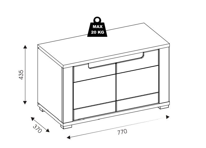 Rozměry: š. 77 cm / hl. 37 cm / v. 43,5 cm