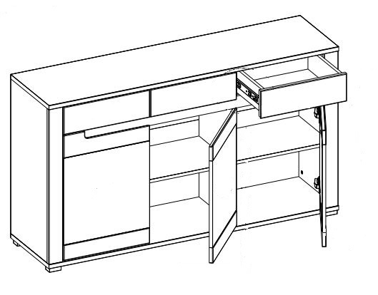 Komoda Y3 ze systému YORK - tří dvířková s policemi a šuplíky v horní části