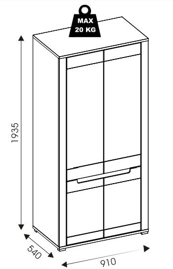 Rozměry: š. 91 cm / hl. 54 cm / v. 193,5 cm