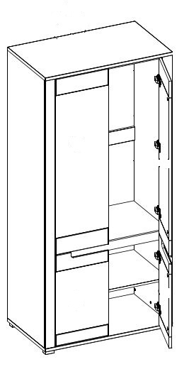 Šatní skříň Y7 ze systému YORK - čtyř dvířková ( s dvou dvířky nad sebou ). V dolní části police, nahoře šatní tyč.