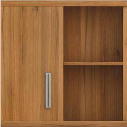 Závěsná skříňka N - 110, s policí, částečně uzavřená plnými dvířky. Velký výběr barevného provedení, včetně kombinací barev je samozřejmostí. Výběrem těch správných úchytů dovršíte svůj jedinečný design.