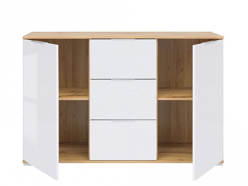 Kombinovaná komoda ze systému ZELE - 2 plná dvířka s policemi, 3 prostorné šuplíky