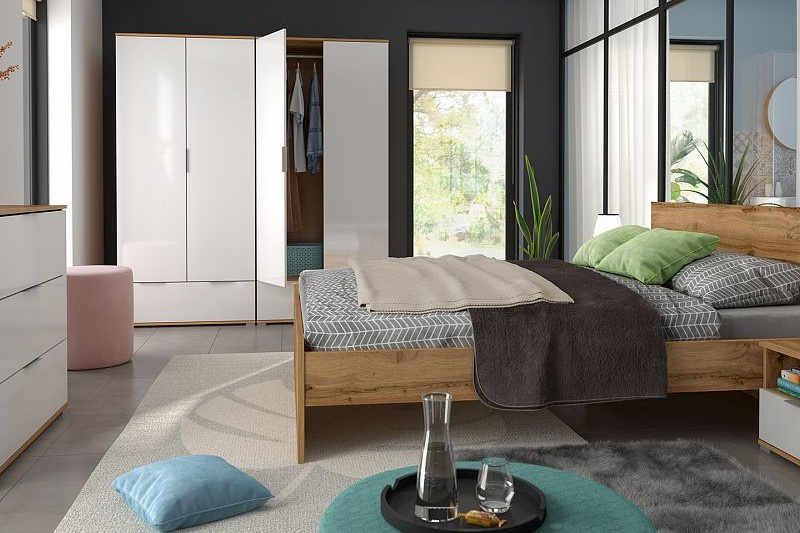 Kolekce nábytku ZELE důmyslně snoubí moderní design, funkčnost a perfektní vzhled. Konstrukce je vyrobena z lamina v barevném provedení dub wotan/dvířka bílý pololesk nebo celé dub wotan. Charakter systému ZELE zdůrazňuje zajímavé provedení úchytů, které jsou spojeny s horním okrajem jednoduchých předních ploch. Jsou nenápadné a velmi vkusné. S tímto nábytkem snadno vybavíte studentský či obývací pokoj nebo ložnici.