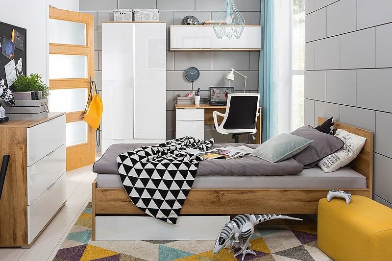 Kolekce nábytku ZELE důmyslně snoubí moderní design, funkčnost a perfektní vzhled. Konstrukce je vyrobena z lamina v barevném provedení dub wotan/dvířka bílý pololesk nebo celé dub wotan. Charakter systému ZELE zdůrazňuje zajímavé provedení úchytů, které jsou spojeny s horním okrajem jednoduchých předních ploch. Jsou nenápadné a velmi vkusné. S tímto nábytkem snadno vybavíte studentský či obývací pokoj nebo ložnici.