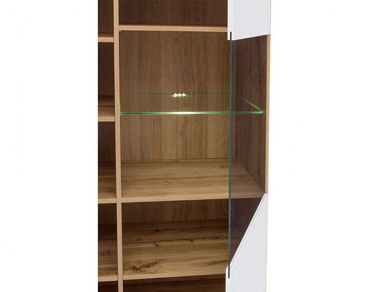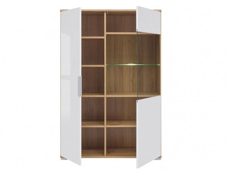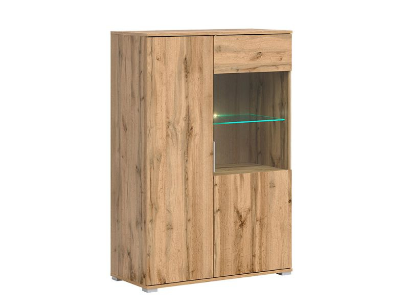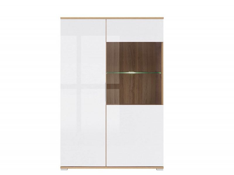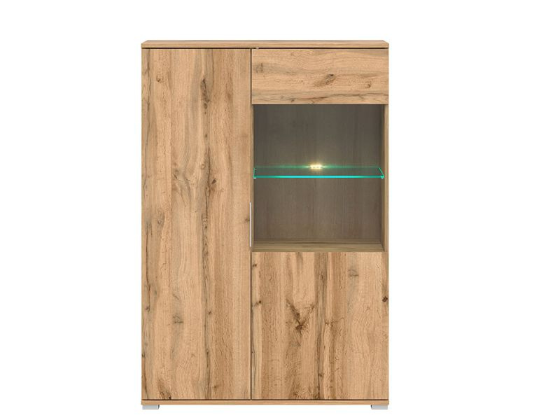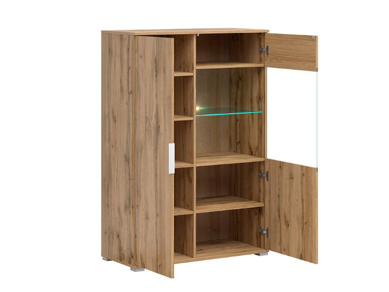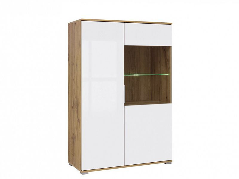 Nízká vitrína ze systému ZELE - plná i prosklená dvířka, s policemi