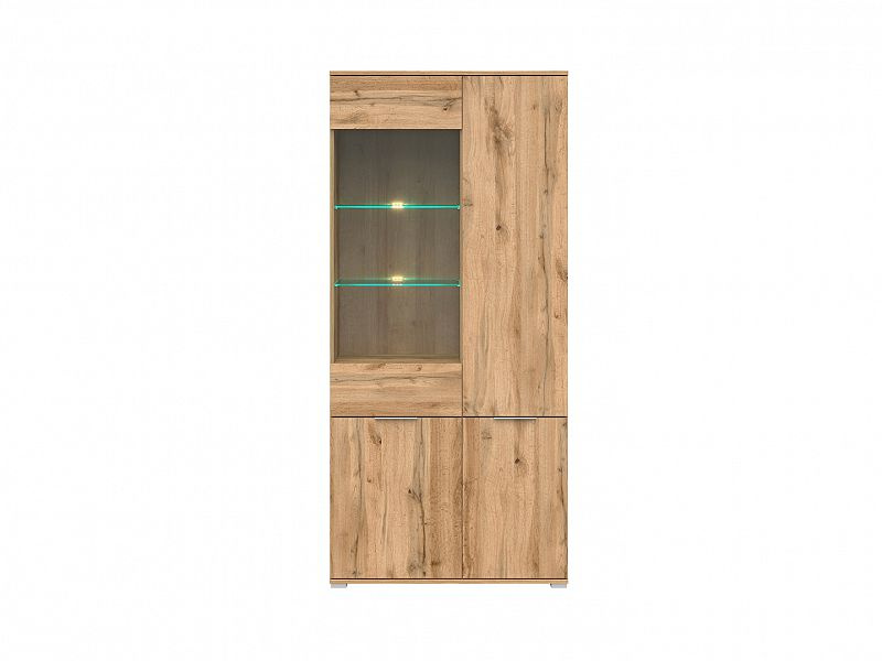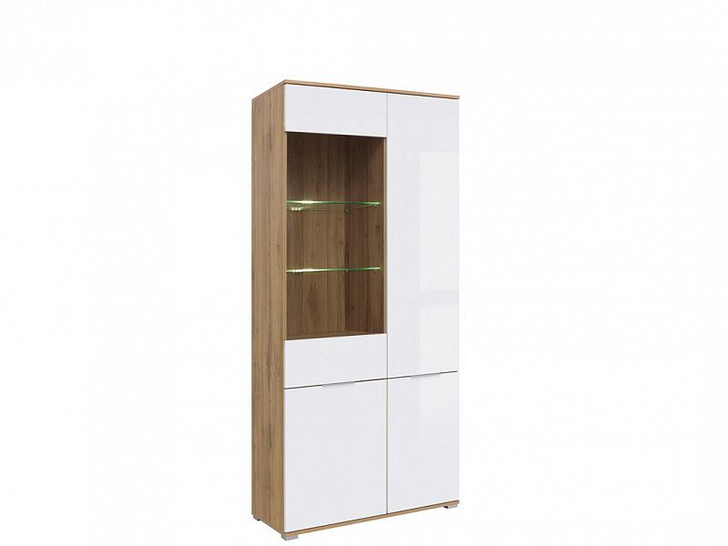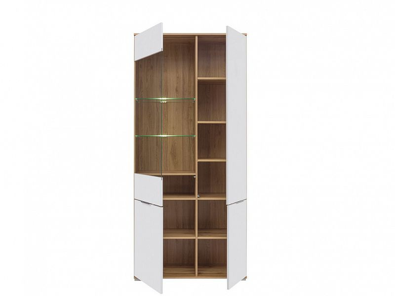 Vysoká vitrína ze systému ZELE - plná i prosklená dvířka, s policemi
